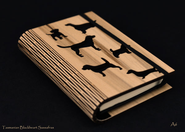 Tasmanian made notebook cover featured here using our beautiful Tasmanian Timbers . Comes with a removable A5 hard cover book for the large and an A6 for the small which can be easily removed and replaced. These notebooks are made from one piece of Tasmanian Timber Veneer and are laser cut to form a flexible spine, which has binding on the inside. The large notebook comes with a leather strap .Our products are all finished with a 2- pack finish making them water resistant.