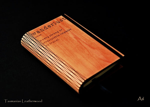 Tasmanian made notebook cover featured here using our beautiful Tasmanian Timbers . Comes with a removable A5 hard cover book for the large and an A6 for the small which can be easily removed and replaced.  These notebooks are made from one piece of Tasmanian Timber Veneer and are laser cut to form a flexible spine, which has binding on the inside. Our products are all finished with a 2- pack finish making them water resistant.