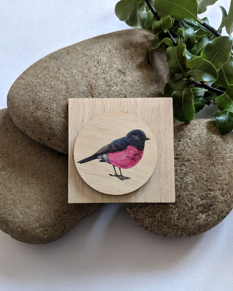 Our timber brooches are made from Tasmanian Timber Veneer. All brooches are printed on Tasmanian Oak. Colours, patterns and designs may vary from photos. Brooches come mounted on Tasmanian Oak Veneer display card. Brooch measures 47mmx47mm.