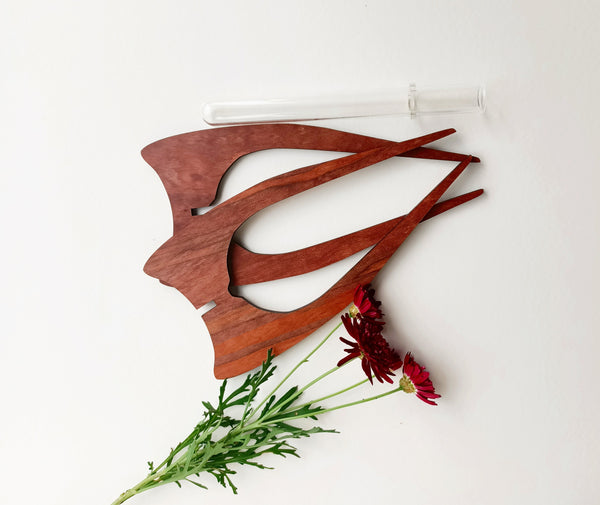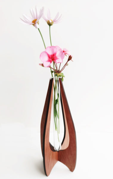 Our flat pack bud  vases pack down for easy sending. They come in a Australian Made black cardboard box . Easy to assemble . Height 185 mm and width 85mm. If you would like one of our plywood boxes displayed in our  video these can be purchased by contacting us.