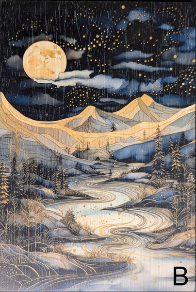 These wooden cards can be used for postcards ,  cards or  framed up into one of our standard size frames or a purchased generic frame. They measure 10.5 x 15.5 cm  and are made from Tasmanian Oak veneer. They come with a recycled paper envelope and packaged in a clear bag.