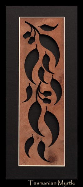 Ready to frame gum panel featuring our beautiful Tasmanian Timbers. This solid  unframed silhouette panel has a choice of 7 timbers. These unframed panels come with a species card attached to the back  with information about the timbers used. This panel is made like all of our other products in our workshop in Hobart .